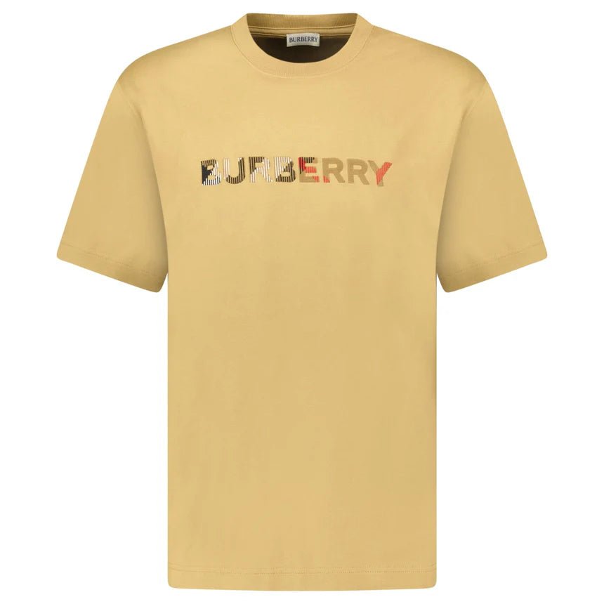 BURBERRY CHECK LOGO EMBROIDERED T-SHIRT BEIGE